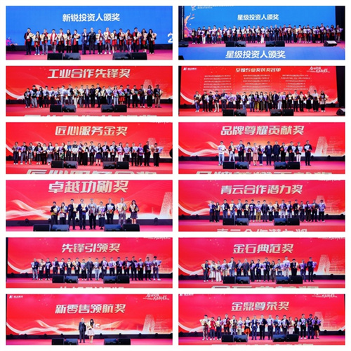 大会特设“星光璀璨”颁奖盛典,向与集团风雨同舟、贡献卓越的合作伙伴与投资人致以最高敬意。活动隆重表彰了数十位新锐与星级投资人,以及近百家在工业合作、专业服务、匠心运营、品牌贡献、卓越功勋等方面表现突出的标杆门店。同时,大会向众多优秀工业厂家、供应商颁发了“青云合作潜力奖”、“先锋引领奖”、“金石典范奖”、“新零售领航奖”及最高荣誉“金鼎尊荣奖”,全面肯定了供应链生态伙伴在助力南北医药集团持续成长中的核心价值。