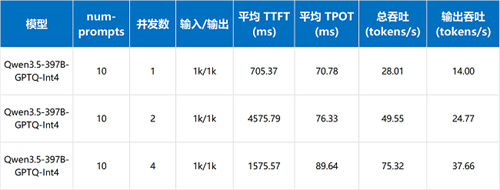 单并发下TTFT约705.37ms,总吞吐达28.01 tokens/s;当并发提升至4时,整体吞吐更是达到75.32 tokens/s,强悍性能足以支撑企业级高频并发需求。