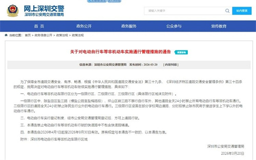 4月1日起,深圳正式实施电动自行车三级限行政策,以分级管控重构城市路权分配,600万“电鸡”大军迎来新一轮路权重构。从全天禁行的快速路,到分时段管控的学校周边,再到为民生行业预留的通行通道,深圳以精细化分级管理,试图破解超大城市电动车治理的困局。反观这场限行风暴背后,传递出一个清晰信号:无论管控如何调整,电车合规才是上路的唯一硬门槛。